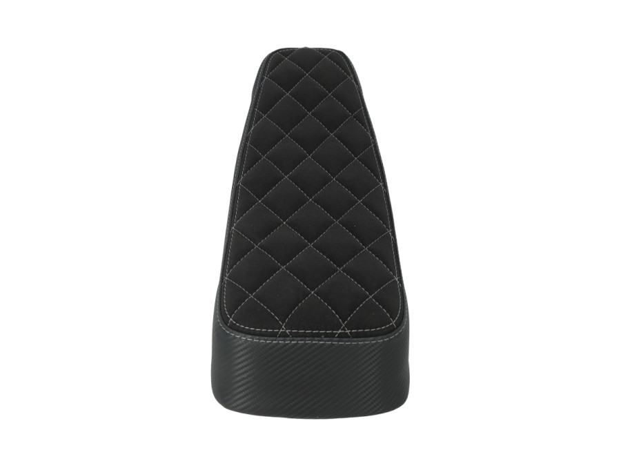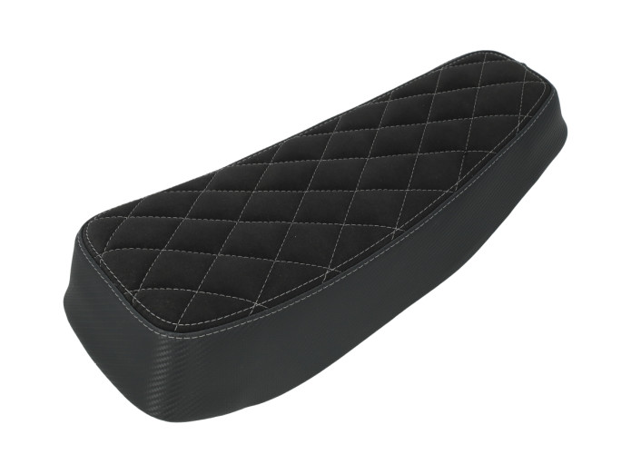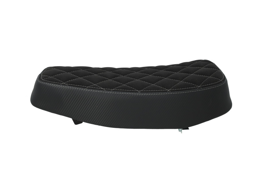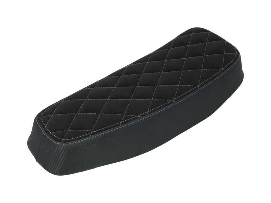 Unser berühmter Tomos A3 / A35 Buddyseat. Jetzt in einer exklusiven limitierten Ausführung mit weißen Rautenstickerei und Carbon-Optik an den Seiten.
