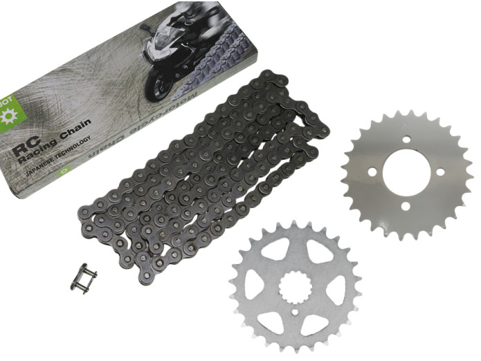 Chain and sprocket set for various Tomos models.